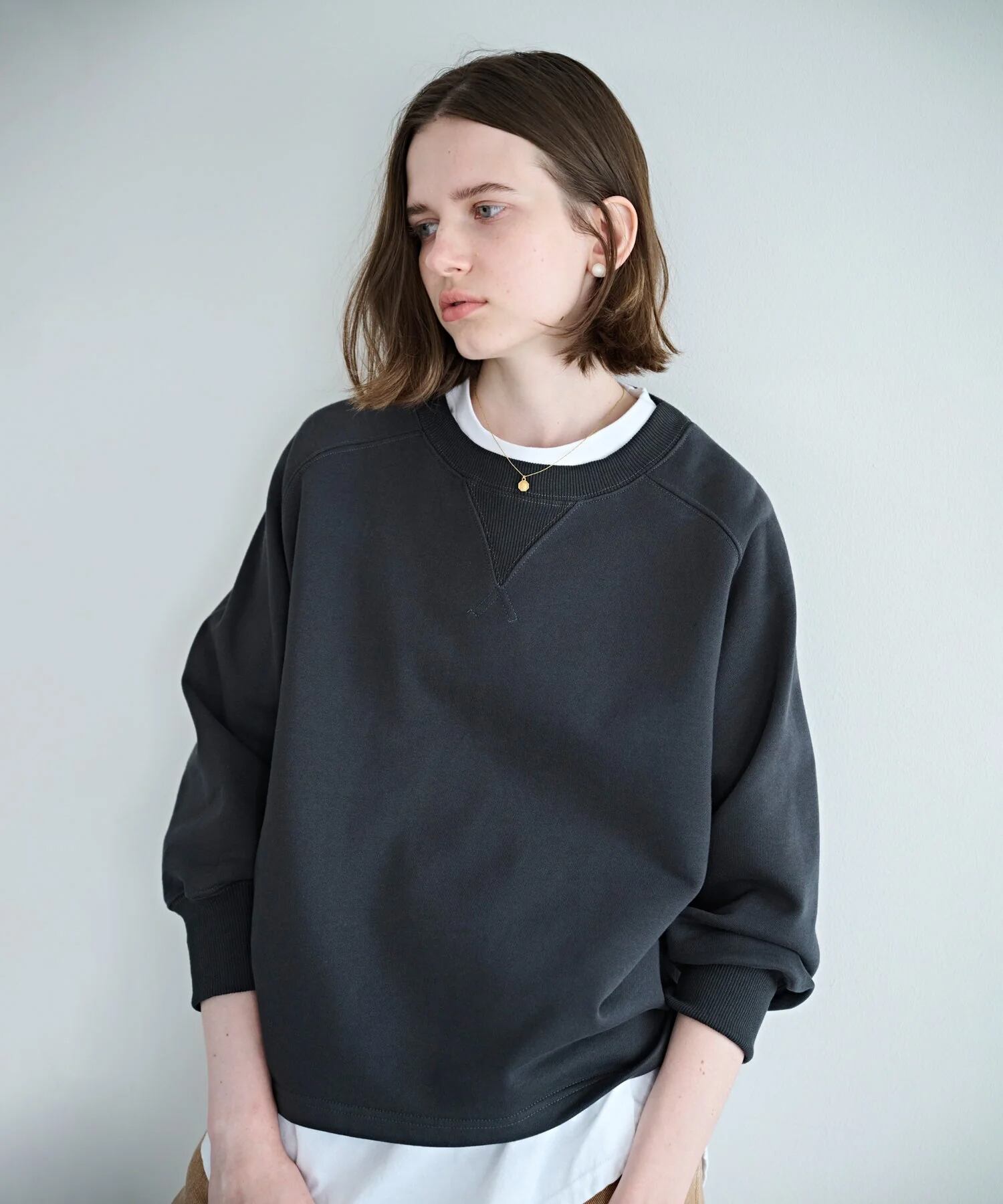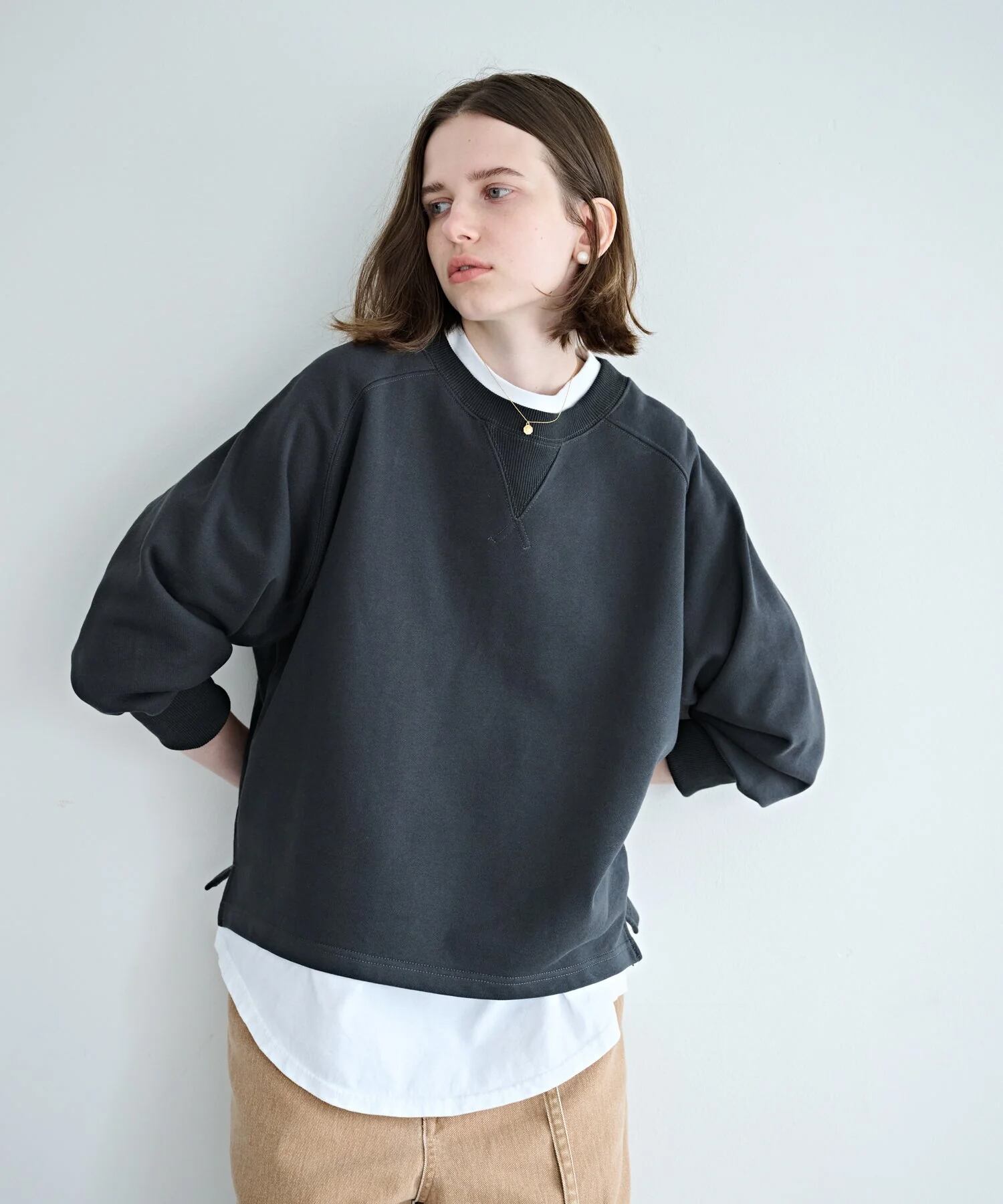 ヴィンテージのスウェットシャツのディティールをベースにアレンジを加えた8分袖のスウェットです。